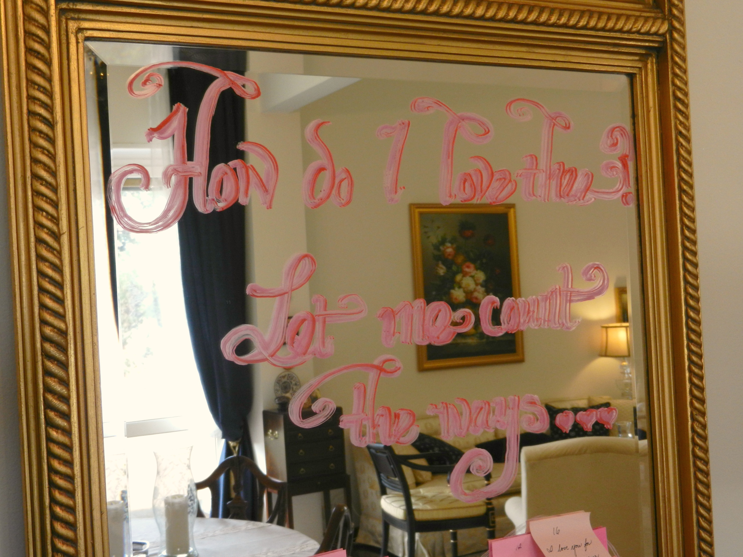 Write the first lines of Elizabeth Barrett Browning’s famous poem on the mirror with some chalk paint, or use your word processing program to make a sign to go above the heart.
